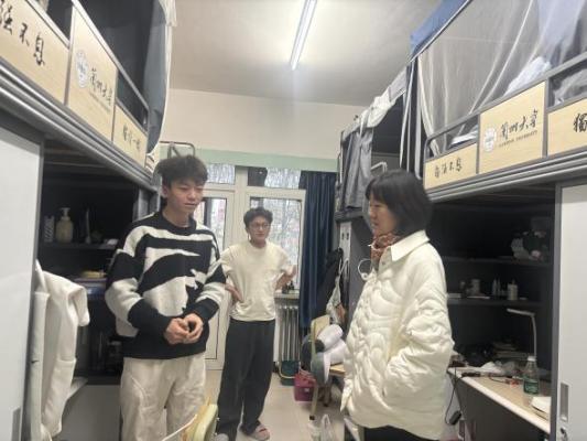 6.11月21日,学院党委副书记吕洁和辅导员李宏敏走访学生宿舍,了解学生近期学习进展、思想状况和生活所需。