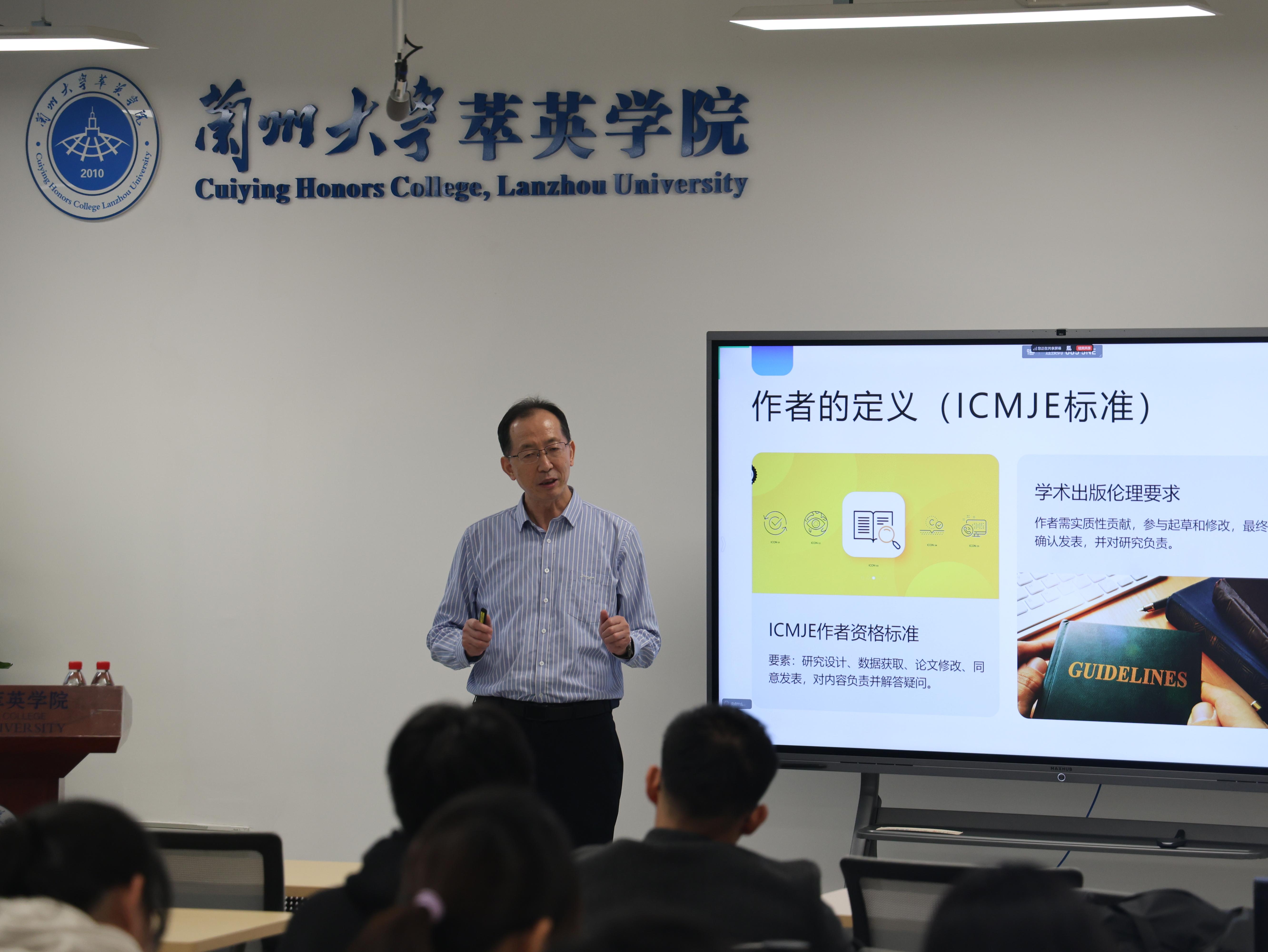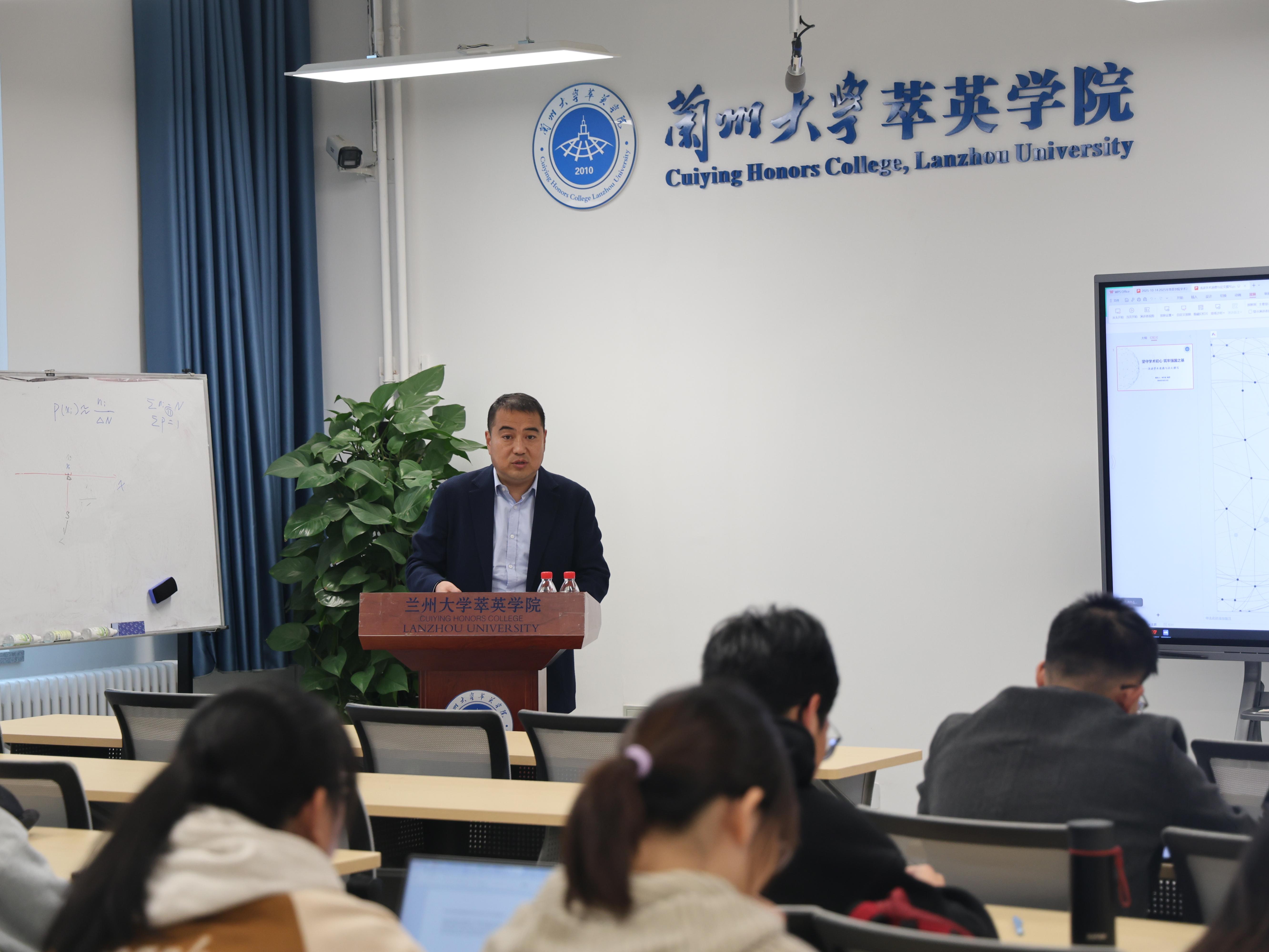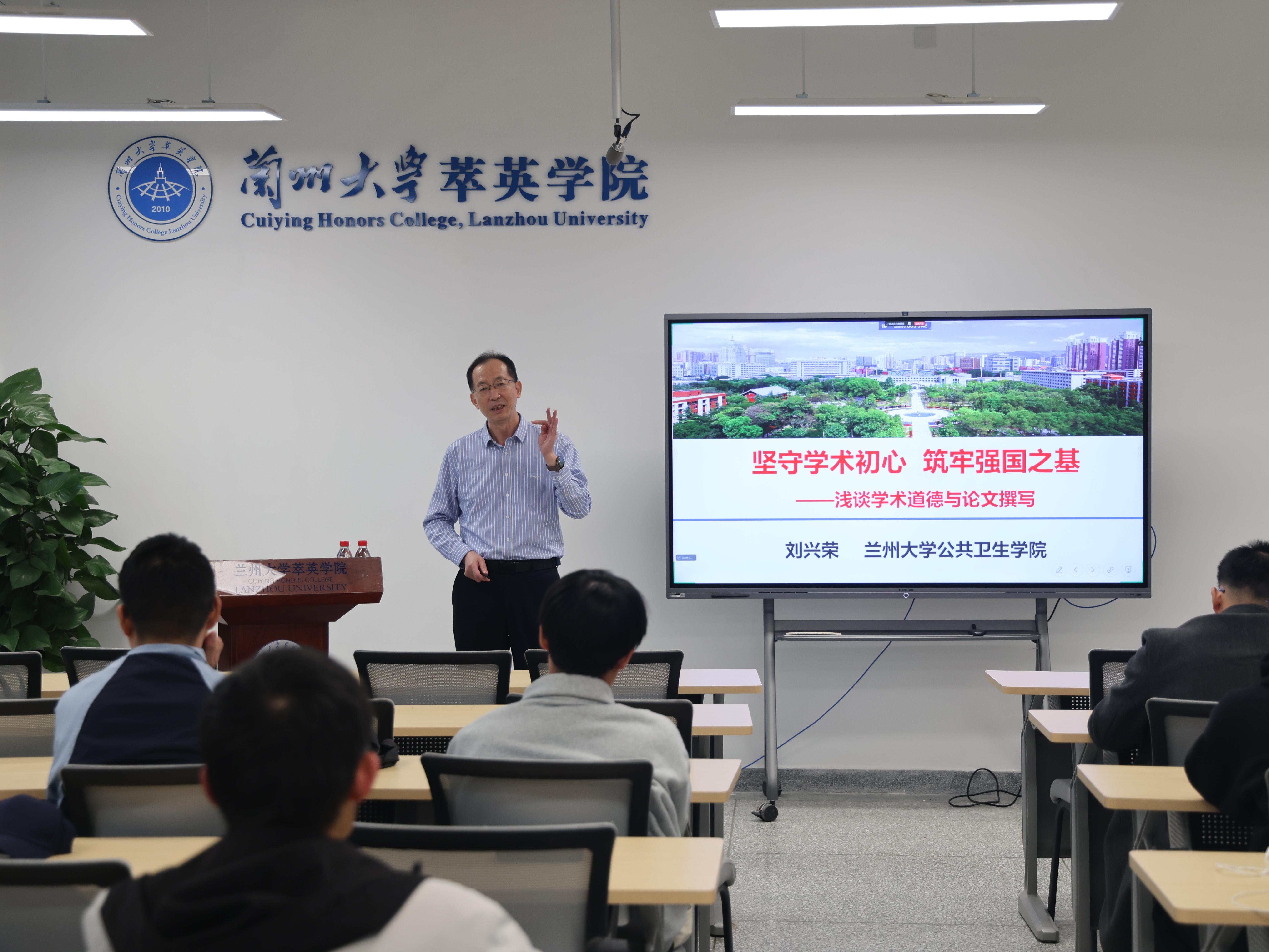 讲座尾声,刘兴荣指出,学术道德是学术大厦的地基,追求真理、严谨治学是科学家精神的核心。他鼓励同学们“诚以修身,信以立世”,加强道德修养,增强抵御诱惑的能力,守护学术良心;更要胸怀“国之大者”,将个人学术追求融入国家发展大局,为社会进步、民族复兴讲好“兰大故事”、谱写“兰大篇章”。
